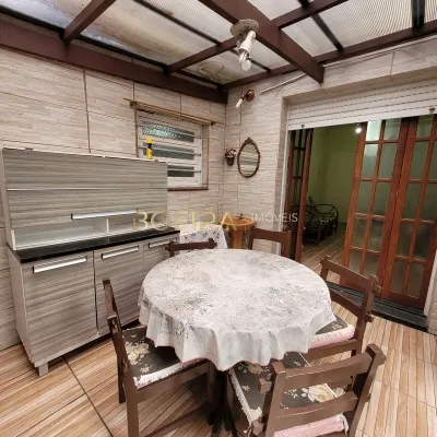 Apartamento de 2 dormitórios, banheiro, sala, cozinha, área de serviço, churrasqueira e box. Anexo com 1 dormitório e banheiro.