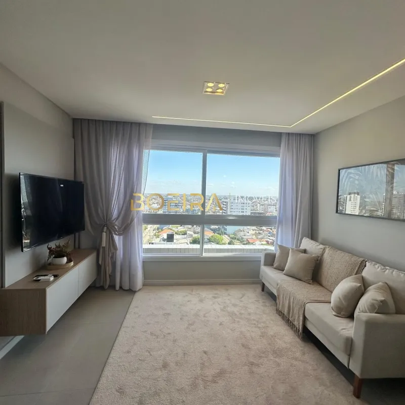 Apartamento 1 suíte, banho, sala, cozinha, área de serviço, churrasqueira e box duplo.
