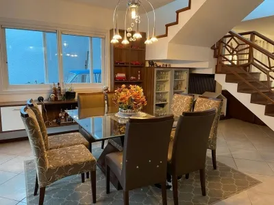 Composto por 4 dormitórios sendo duas suítes, sala de estar e sala de jantar, cozinha completa, banheiro social, lavabo, área de serviço, churrasqueira, 3 vagas de garagem e um pátio amplo com piscina que garante praticidade e conforto no dia a dia.
