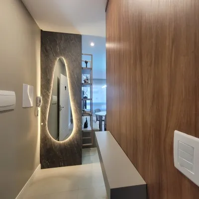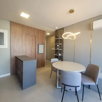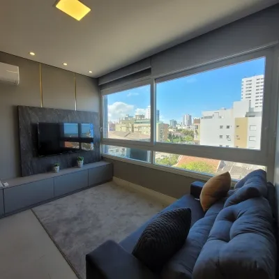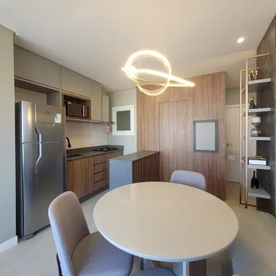 Apartamento mobiliado e decorado, iluminado pelo sol da manhã, composto por 1 dormitório, sala de estar e jantar integradas, cozinha, banheiro social, área de serviço, churrasqueira e box de garagem.