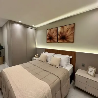 Apartamento decorado em prédio novo, localizado próximo ao mar, com infraestrutura completa para oferecer conforto, praticidade e lazer.