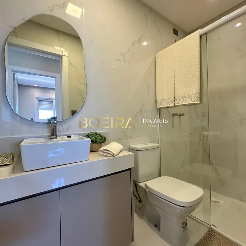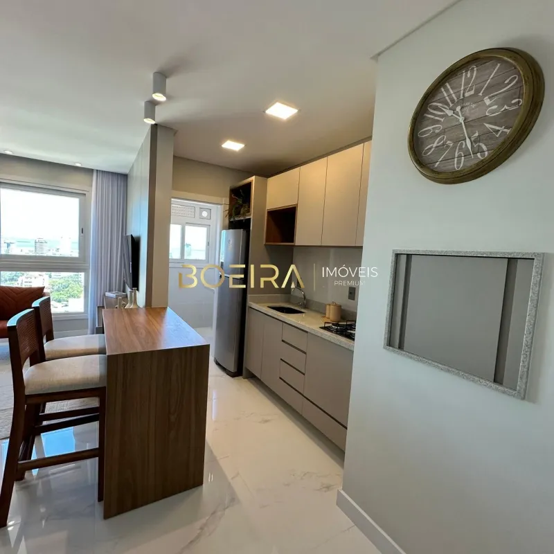 São dois dormitórios, sendo uma suíte, ambientes de estar e jantar integrados que trazem amplitude e elegância, cozinha funcional, espaço gourmet com churrasqueira, área de serviço, banheiro social e box de garagem.