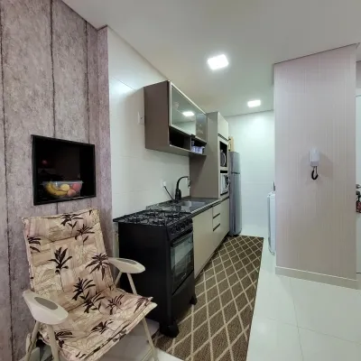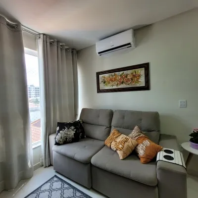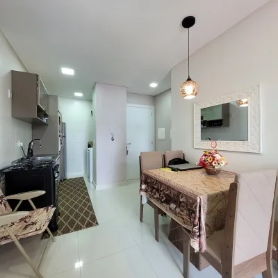 Apartamento semi mobiliado, localizado entre o centro e o mar, unindo praticidade e ótima localização. O imóvel é constituído por 1 dormitório, sala de estar e jantar integradas, cozinha, banheiro social e box de garagem.
