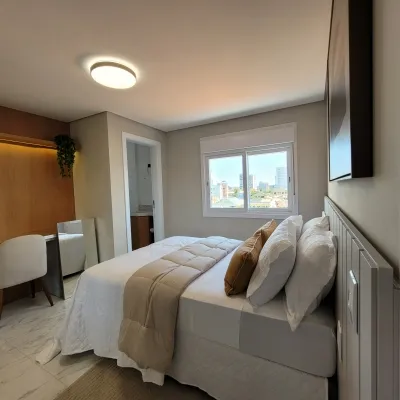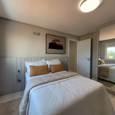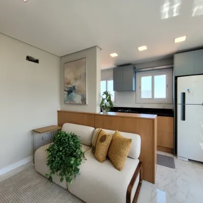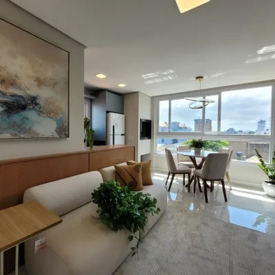 Apartamento mobiliado e decorado, localizado entre o centro e o mar, em edifício novo, com projeto moderno e excelente padrão de acabamento. O imóvel conta com 2 dormitórios, sendo 1 suíte, sala de estar e jantar integradas, cozinha funcional, espaço gourmet com churrasqueira, banheiro social e 1 box de garagem.