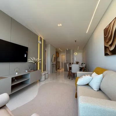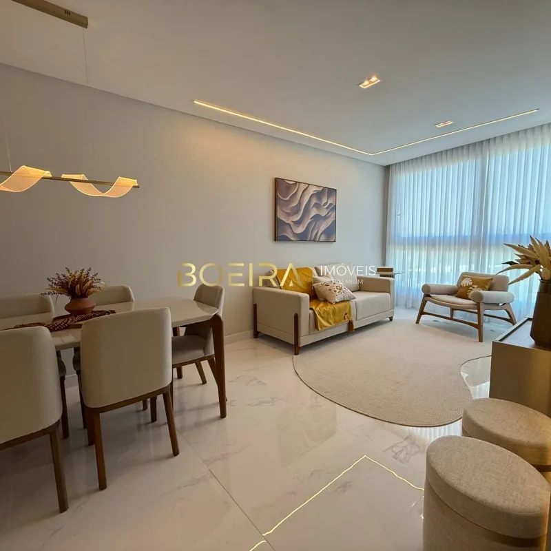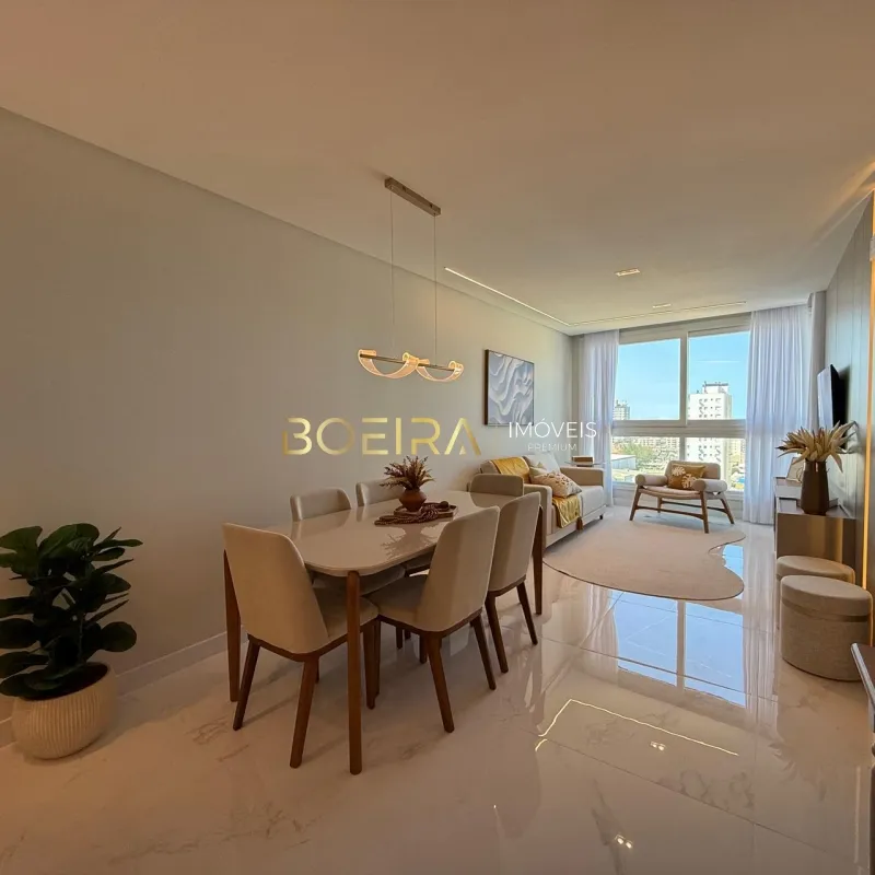 Apartamento mobiliado e decorado, com vista encantadora para o mar, localizado em prédio de alto padrão, pensado para quem valoriza conforto, sofisticação e qualidade de vida. O imóvel possui 2 dormitórios, sendo 1 suíte, sala de estar e jantar integradas com ampla abertura que valoriza a vista para o mar, cozinha em estilo americano, área de serviço, banheiro social e box de garagem.