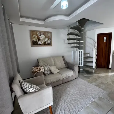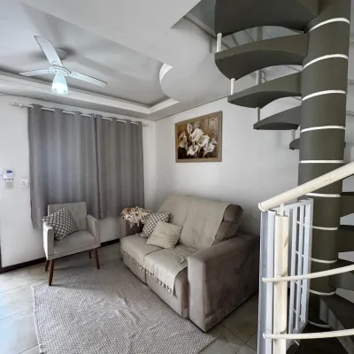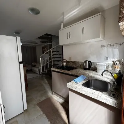 Amplo duplex constituído de 2 suítes, sala, cozinha, banho social, espaço com churrasqueira e lavanderia.