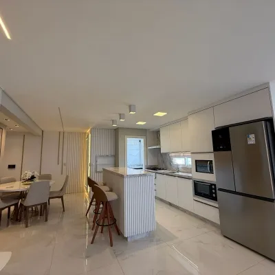 Apartamento mobiliado e decorado, iluminado pelo sol da manhã e com uma vista encantadora para o mar. O imóvel conta com 3 dormitórios, sendo 1 suíte e 1 closet, além de sala de estar e jantar integradas que proporcionam amplitude e sofisticação aos ambientes, cozinha em estilo americano, espaço gourmet com churrasqueira, área de serviço, lavabo, banheiro social e box de garagem duplo.