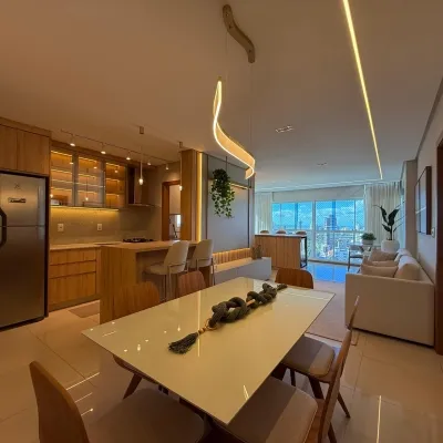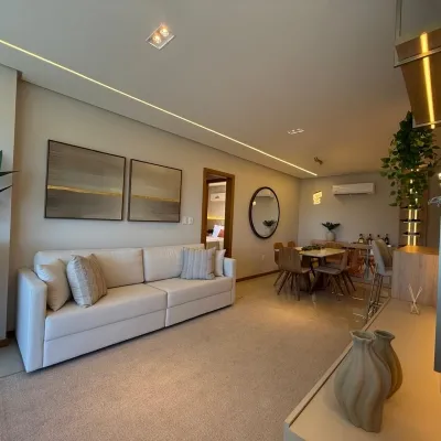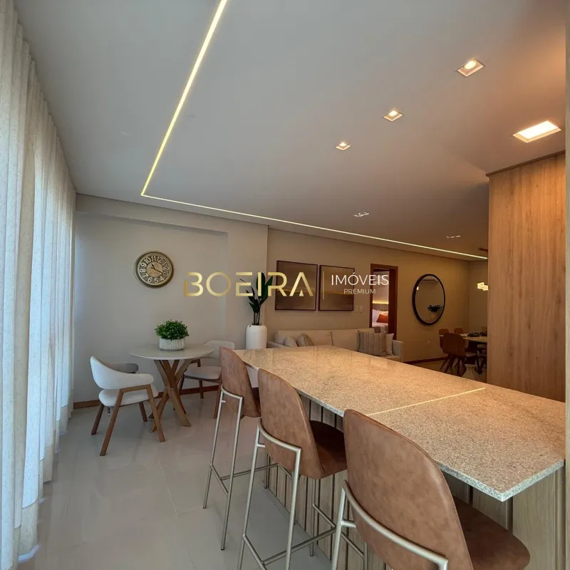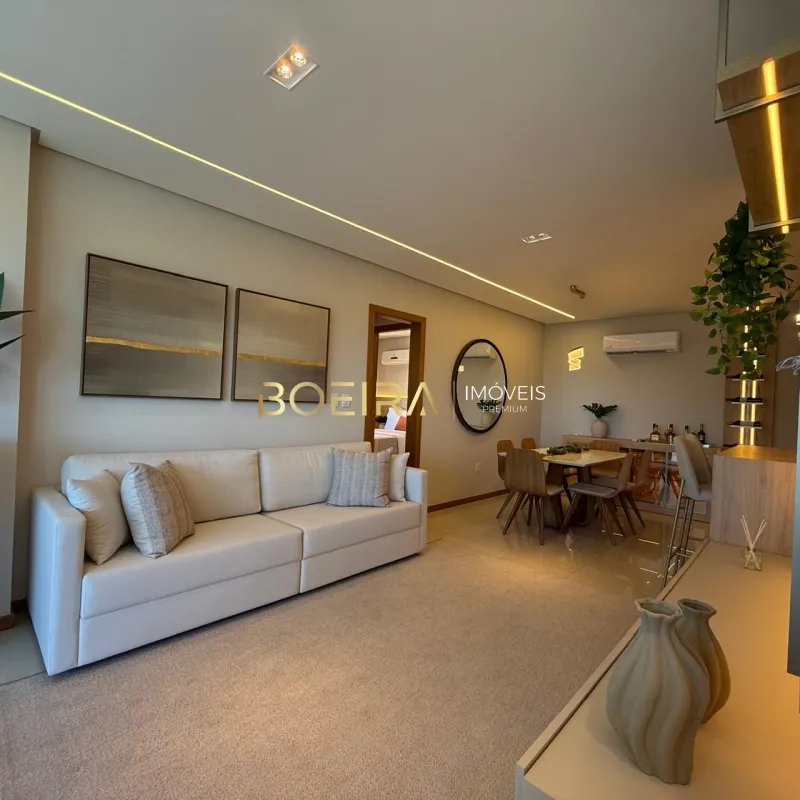 O imóvel conta com 2 dormitórios sendo 1 suíte, sala de estar e jantar integradas com acesso ao espaço gourmet com churrasqueira, cozinha em estilo americano, área de serviço, banheiro social e 1 vaga de garagem.