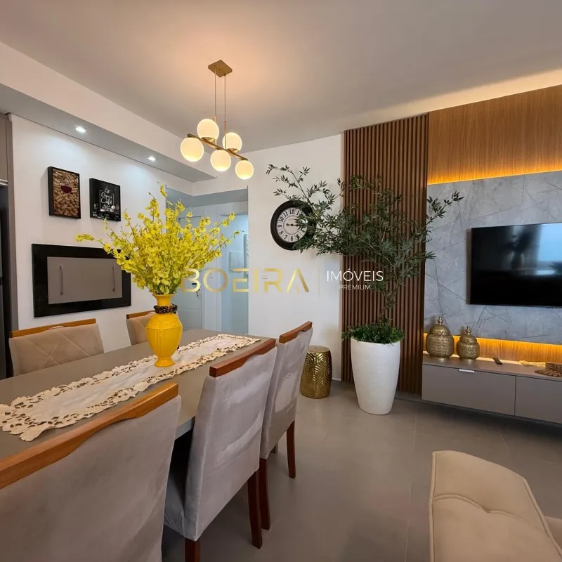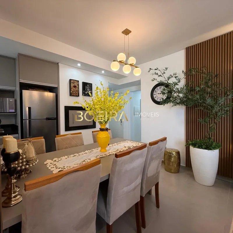 O imóvel conta com 2 dormitórios, sendo 1 suíte, sala de estar e jantar integradas com vista para o mar, cozinha em estilo americano, espaço gourmet com churrasqueira, área de serviço, banheiro social e box de garagem.