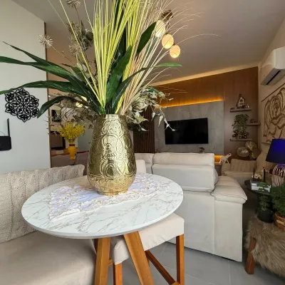 Apartamento amplo, semi-mobiliado, iluminado pelo sol da manhã, perfeito para quem busca conforto e uma vista encantadora para o mar.