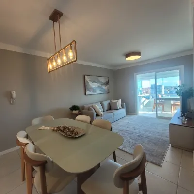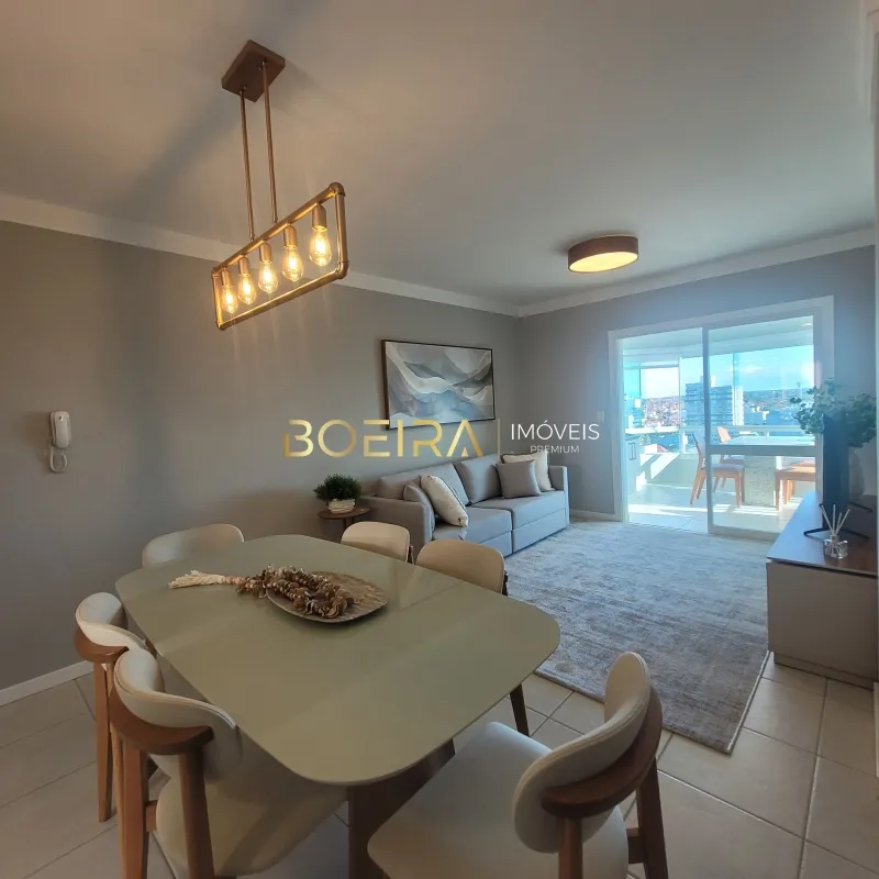 Apartamento mobiliado e decorado, em andar alta com excelente orientação solar, constituído de 2 dormitórios, sendo 1 suíte, sala estar e jantar integradas com acesso a uma ampla sacada que contem churrasqueira, cozinha estilo americano, área de serviço, banheiro social e box de garagem.